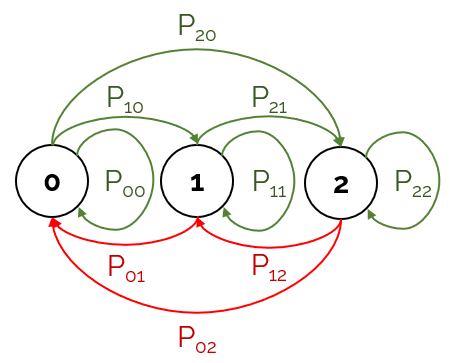 Let’s define our state set with 4 possible states; one for each player, and one for the loss of each player: